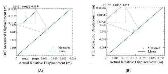 DIC measurement resolution results: (A) Out-of-plane direction; (B) In-plane direction.