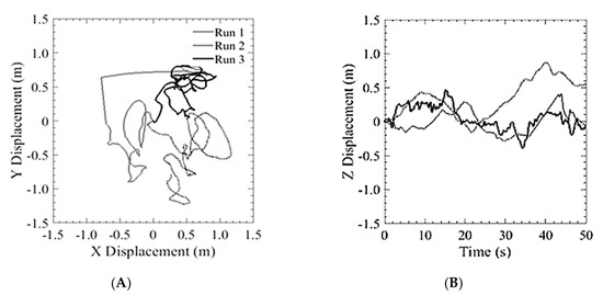 Typical performance of a COTS GPS based system: (A) Lateral position hold; (B) Vertical position hold.