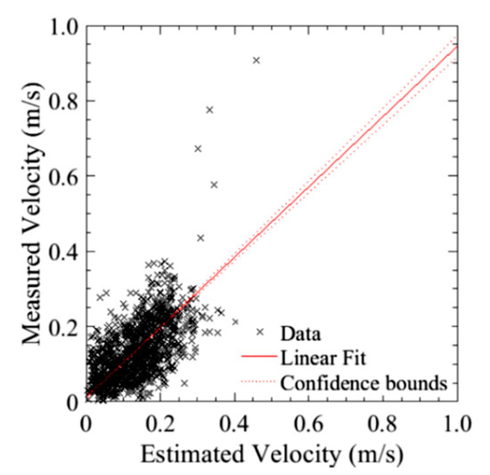 Estimated velocity (from GPS) versus measured velocity (DIC) of the best run for the bridge inspection airframe.
