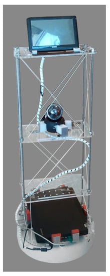 The Home Robot shown in Figure 2 consisted of four main components: an iRobot Create 2, a laptop computer that used as a control unit, a web-camera (Logitech Quickcam Orbit), and a touchscreen (Mimo Um-720s). The iRobot Create 2 (a development kit produced by iRobot) was used to enable the navigation of the environment and it provided the base of support for a shelf-like system utilized to accommodate the other components of the Home Robot.
