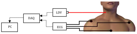 - Scalise, L.; Morbiducci, U. Non-contact cardiac monitoring from carotid artery using optical vibrocardiography. Med Eng. Phys. 2008, 30, 490–497. [Google Scholar] [CrossRef]