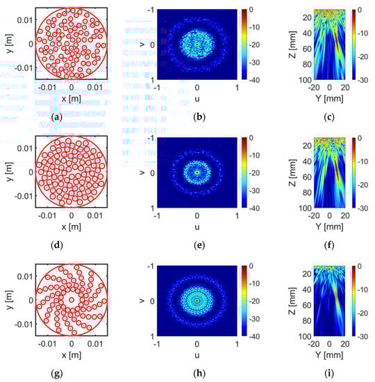The position of the elements in the random array were arbitrarily selected within the aperture. To avoid overlapping between array elements, a minimum distance between two elements was set, which can be expressed as