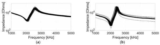 Impedance response of all array elements for (a) the CECAT and (b) the C1–3.