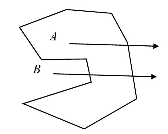 - Hormann, K.; Agathos, A. The point in polygon problem for arbitrary polygons. Comput. Geom. 2001, 20, 131–144. [Google Scholar] [CrossRef]