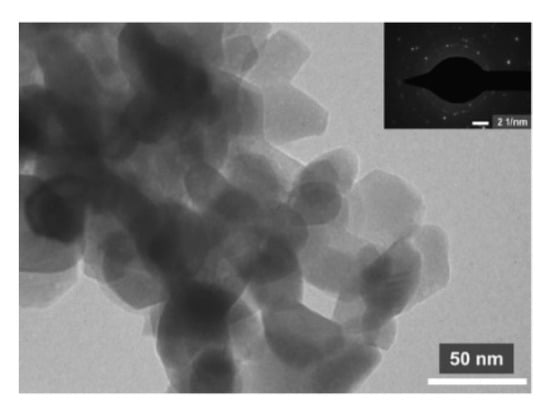 TEM and SAED images of ZnFe2O4 powder [17].