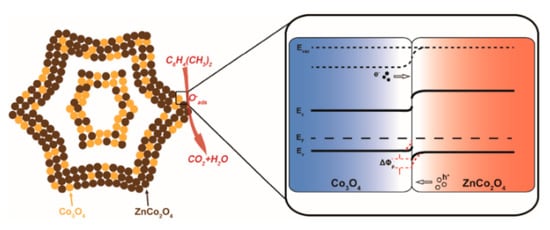 - Qu, F.; Thomas, T.; Zhang, B.; Zhou, X.; Zhang, S.; Ruan, S.; Yang, M. Self-sacrificing templated formation of Co3O4/ZnCo2O4 composite hollow nanostructures for highly sensitive detecting acetone vapor. Sens. Actuators B Chem. 2018, 273, 1202–1210. [Google Scholar] [CrossRef]
