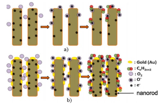 - Nakate, U.T.; Bulakhe, R.N.; Lokhande, C.D.; Kale, S.N. Au sensitized ZnO nanorods for enhanced liquefied petroleum gas sensing properties. Appl. Surf. Sci. 2016, 371, 224–230. [Google Scholar] [CrossRef]