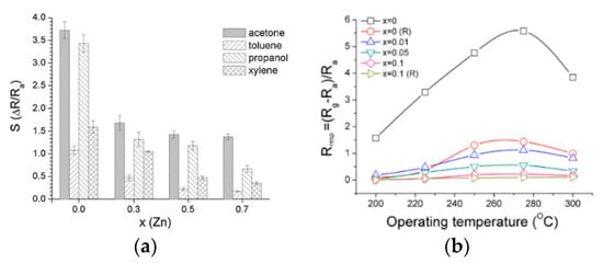 - Wang, L.; Zhou, T.; Zhang, R.; Lou, Z.; Deng, J.; Zhang, T. Comparison of toluene sensing performances of zinc stannate with different morphology-based gas sensors. Sens. Actuators B Chem. 2016, 227, 448–455. [Google Scholar] [CrossRef]
