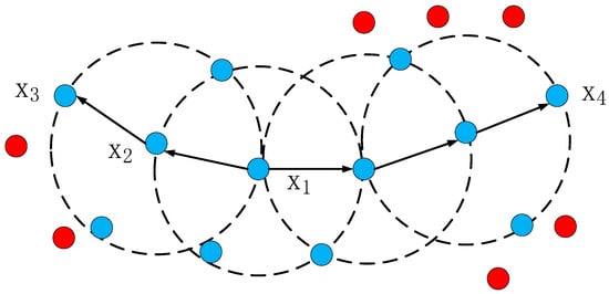 DBSCAN is a famous density clustering algorithm, which uses a set of parameters about “neighborhood” to describe the compactness of sample distribution [6]. The parameters include neighborhood distance e and minimum number of neighborhood samples MinPts. The algorithm includes several concepts: Neighborhood, core object, density direct, density reachable, and density connected. The details are shown in Figure 4.