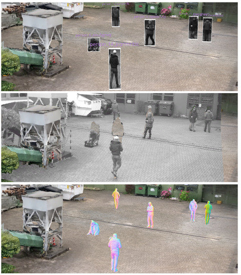 - Collins, R.T.; Lipton, A.J.; Fujiyoshi, H.; Kanade, T. Algorithms for cooperative multisensor surveillance. Proc. IEEE 2001, 89, 1456–1477. [Google Scholar] [CrossRef]