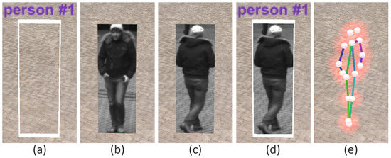 In addition to the mere object detection within an image, it is also essential to identify the same object during a video or in different footage. The so-called object re-identification task is a very challenging and error-prone task, e.g., due to context-related problems like occlusion, noise, varying illumination, moving background objects, and ambiguity [15,16]. Li and Loy presented an approach that allows the re-identification of objects in successive frames, even if an object could not be identified in the frames in between [17]. Their segmentation-based approach allows visual tracking of objects that even change in scale and rotation. While this approach focuses on object re-identification in a single camera, others specialize in object tracking through multi-camera systems. For example, Bialkowski et al. [18] presented a database for the re-identification of persons with videos that record the same environment from different angles and under different lighting conditions. They demonstrated the dataset using a simple re-identification system that compares detected objects between different cameras. The presented approach requires overlapping viewports of the cameras. Other approaches are even more sophisticated and support the tracking of objects through non-overlapping camera networks [19,20]. Beyond the extraction of movement trajectories, several approaches aim to analyze the movement of detected persons further. For example, Devanne et al. analyzed the trajectories of skeletons and focused on the recognition and classification of actions within the movement of a person [21]. Goffredo et al. dealt with gait analysis in surveillance videos [22]. The way a person walks is very individual, making it possible to use gait characteristics for person re-identification.