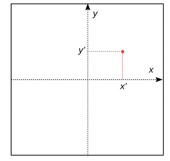 The formula in the y-axis will be analogous. In Dependence (20) and the analogous formula for the y-axis, all their components can be determined except for u(x′) and u(y′), i.e., the uncertainty of the standard measurement of the object position on the image sensor in the x and y axes, the designation of which is the purpose of this article.