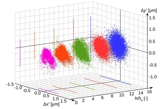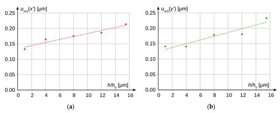 Figure 4b presents the uncertainty ureg(x′) for the measurement in the horizontal and vertical axis as a function of the brightness change of the recorded image, which is calculated as a standard deviation in accordance with the formula: