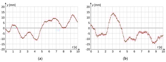 Measurement results of vertical movements of an HV overhead power line conductor; (a) for optimal brightness level; (b) for brightness level lower by 1.5 EV than the optimal.