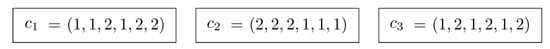 In this paper, a codification equivalent to one of the most common representations of the literature is used, which is known as “coding by operation order”, first presented in Reference [64]. Since, in this representation, the solution space of a JSSP of N jobs and M machines is formed by chromosomes , such that exactly M coordinates of c are equal to i (representing the job index i), for every .