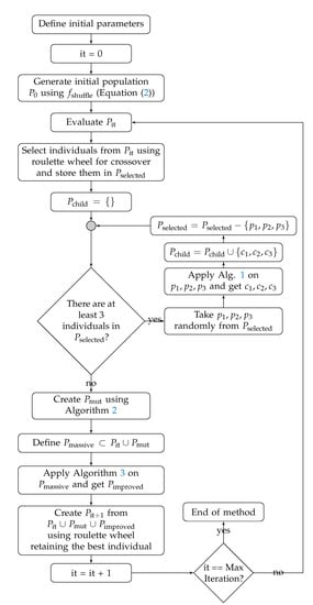 - An improved crossover operator (Section 4.4) based on the version of Reference [22], including a multi-crossover strategy with the goal of increasing the search capability of the method by using a framework based on a set of crossover functions.