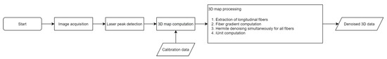 We devised an optical measurement system comprised of two laser lines and a matrix camera that allows the computation of both the height and gradient information along each 1D fiber. Using a combination of both pieces of information, we developed a method capable of obtaining a precise surface reconstruction that is robust against all kinds of noise sources [