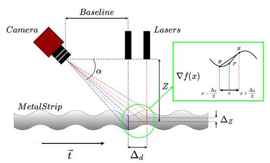 11] to measure manifest flatness, i.e., flatness not hidden by tension. These systems allow measuring smaller defects at higher line-speeds, enabling real-time control and a higher level of integration. The most commonly used optical surface flatness inspection systems are based on the laser triangulation principle [