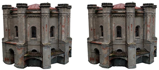 Unmanned Aerial Systems (UAS) are widely used in low-cost photogrammetry [24,25,26,27,28]. Even small aerial vehicles (AVs) can provide valuable data for the inventory of inaccessible and dangerous areas or objects. The UAS multi-sensor approach to 3D modeling and reconstruction of cultural heritage objects has been studied by many authors [29]. The combination of UAS with laser scanning can provide excellent fast data acquisition capabilities, also for AR/MR purposes [30].