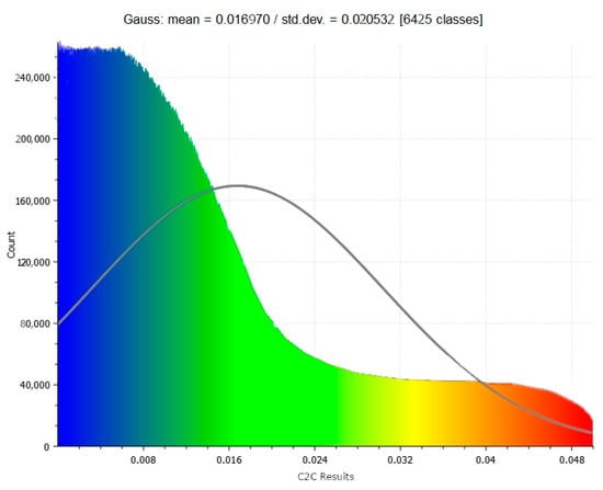 Additionally, before the final comparison of the point clouds, they should be accurately registered as any misregistration error may be wrongly interpreted as a change in the environment. In the second step, a fine registration was made. It was done based on the Iterative Closest Point (ICP) algorithm by minimizing the point-to-point distances between the point clouds. The RMS for point cloud registered using the ICP was calculated as 0.14 m.