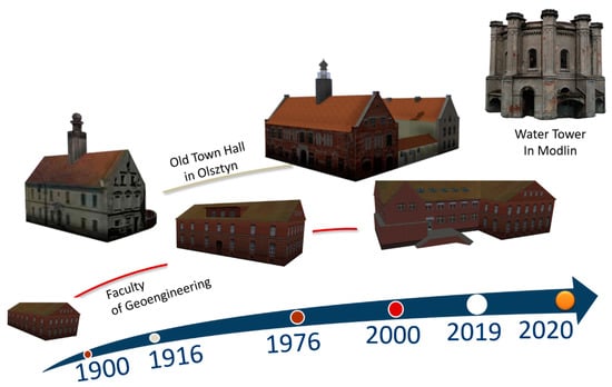 - Templin, T.; Brzezinski, G.; Rawa, M. Visualization of Spatiooral Building Changes Using 3D Web GIS. In Proceedings of the World Multidisciplinary Earth Sciences Symposium (WMESS 2018), Prague, Czech Republic, 3−7 September 2019; Volume 221, p. 012084. [Google Scholar]