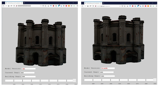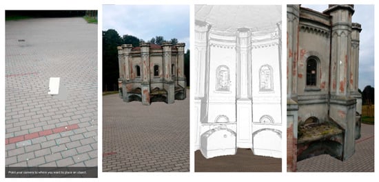 In addition, it is possible to add a lector’s voice and to present selected parts of objects. This technology can also be widely used by adding historical animations to outdoor objects, such as open-air museums [64]. The only limitation is devices (smartphone/tablet). Their technical parameters are a significant limitation in presenting advanced 3D models or animations. Thus, optimization of digital AR content is becoming an essential factor.