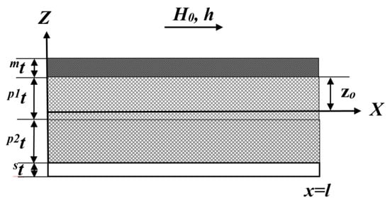 Figure 1 shows the position of the interface between the lithium niobate and Metglas relative to the neutral plane in the ME composite with copper or aluminum as the lower layer. If Metglas is used as the lower layer and the ME structure of the composite becomes symmetrical, then must be used instead of the thickness .