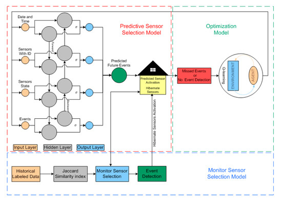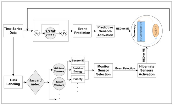 The main theme of EEA-SDC is to tune the sensors’ duty cycling against the event. With the aim to do so, the EEA-SDC predicts the approaching event of the smart home user using previous history data patterns. For the event prediction, the Recurrent Neural Network algorithm (RNN), i.e., BiLSTM, is used to forecast the upcoming event. Against the forecasted event, the EEA-SDC turns on the correspondent sensor and labels as PS. Thereafter, the EEA-SDC segregates the rest of the sensors into different sets of clusters on the bases of their location, residual energy, and frequency of occurrences in the previous time frame using JSI [