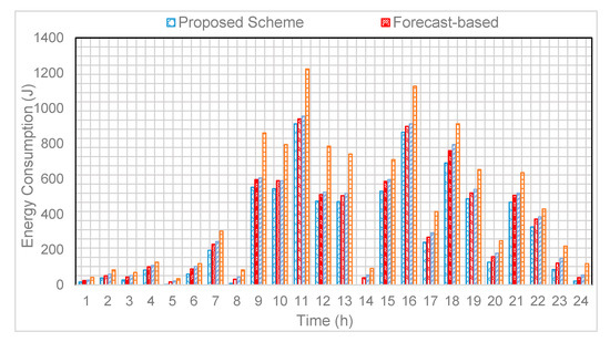 As discussed earlier, the sensor energy depletion is dependent on the number of residents and associated events, i.e., more residents exhibit frequent event of activities, which leads to high energy consumption. The Cairo data set consists of two users; therefore, the probability of event detection is high, and the sensor activation is more frequent as compared to a single resident dataset. The energy consumption comparison of the proposed scheme EEA-SDC against the forecast and relay-based approaches is shown in