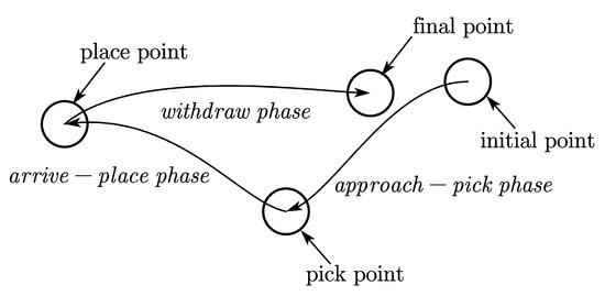 - The withdraw phase, during which the human releases the object from a place point and returns to a final point.