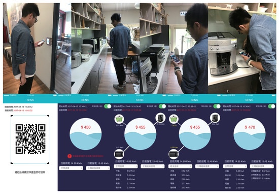In the interaction scenario (Figure 9), users enter each space of the Idea Factory with an app via the QR code access the screen on the door. After scanning the QR code, the energy consumption/generation of the location was displayed in the SENS with basic location information, such as room number and function.