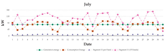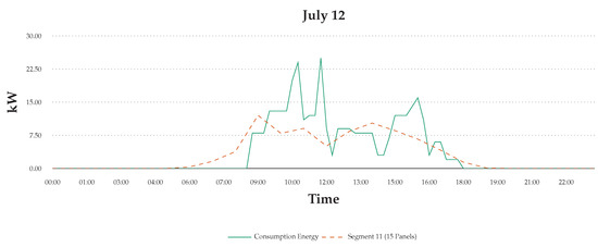 12 July scenario: consumption energy data with simulated generation energy at 15 min intervals.