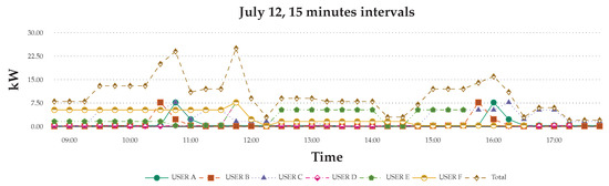 12 July Scenario: Comparison of 15 min consumption energy of the six users.