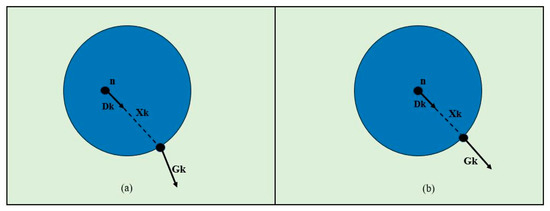 Suppose n is a possible center, and Gk is the gradient vector. If the position of this gradient vector Gk is Xk then the direction of displacement vector Dk should be the same as gradient vector Gk (Figure 4).
