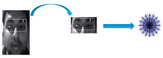 When gradients are computed, it is possible that images have extra structures, i.e., hairs, spectacles, and eyebrows. These structures are responsible for gradients that do not possess the same direction as image gradients of the eye. Due to these structures, eye center computation may become difficult. To overcome this difficulty, the threshold is applied to the objective function. This threshold is based on the maximum value, which eliminates all other remaining entities associated with the desired image boundary. After this, a maximum of prevailing entities is computed, and its position is taken as the eye center (Figure 5). This threshold does not have any negative impact on estimating the eye center. In the present system, the threshold is taken as 85% (0.85) of the overall maximum.