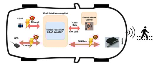 - Changalvala, R.; Malik, H. LiDAR Data Integrity Verification for Autonomous Vehicle. IEEE Access 2019, 7, 138018–138031. [Google Scholar] [CrossRef]