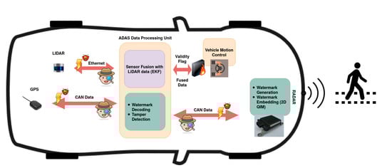 radar objects; 2D QIM; sensor fusion; watermarking; CAN; sensor data integrity; kalman filter 1. Introduction