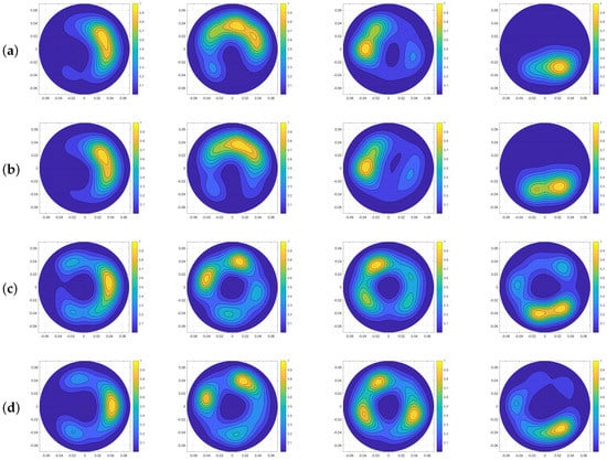 The rotation subtraction strategy has been performed for artefact removal by employing a setup to replicate a signal from two transmitters, which have been positioned 4.5 apart on the perimeter of the cylinder. In the rotation subtraction method [,], artefacts are eliminated by subtracting two measurements collected using two slightly displaced transmitting positions. The RS strategy is described mathematically as “”. This expression can be used in Equation (1). The current procedure has been implemented by subtracting the transmitting position from the transmitting position m, where m and correspond to the same set of recorded measurements.