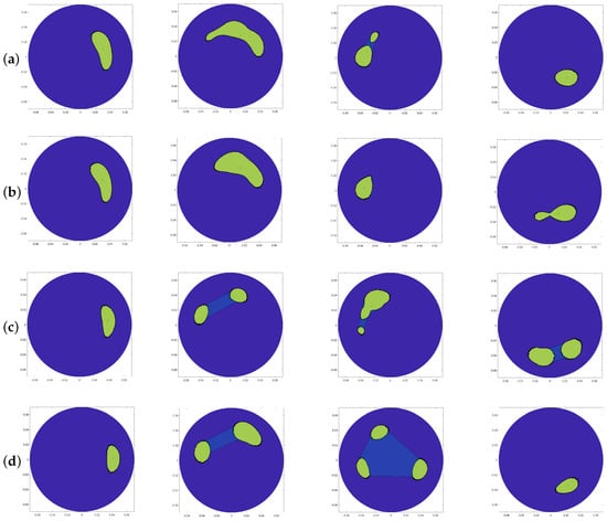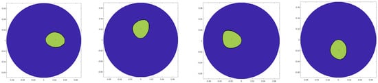 When evaluating an image, the inclusion in the “ideal” image is approximately made up of the normalised values which are over 75% of the maximum value. To evaluate the shape of the inclusion, the image is adjusted through expanding the values greater than 0.75 to 1 and enforcing to 0 the values less than 0.75. By applying MATLAB’s polyboundary and polyshape functions, the resulting shape can be achieved [].