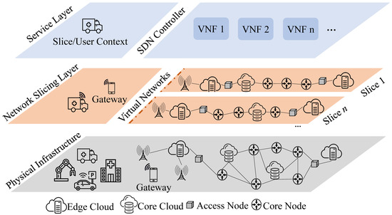 - Afolabi, I.; Taleb, T.; Samdanis, K.; Ksentini, A.; Flinck, H. Network slicing & softwarization: A survey on principles, enabling technologies & solutions. IEEE Commun. Surv. Tutor. 2018, 20, 2429–2453. [Google Scholar]