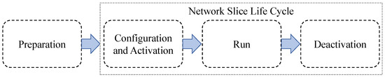 It comprises a fundamental component of network slicing, being responsible for managing and orchestrating network slices. It also allows, configures, and determines slice policies, such as restricted access by a given user, and configures the network resources used by it. Hence, the module has visibility and control of end-to-end slices and the performance of each slice. Thus, it controls the overall functioning of the slices. Moreover, it controls the slice life cycle, i.e., it controls the preparation, configuration, supervision, and deactivation phases, as illustrated in Figure 4.