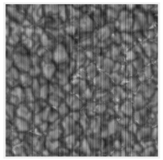 For a long time, CCD has had advantages of high quantum efficiency, high sensitivity, low dark current, good consistency and low noise compared with CMOS image sensors (CISs). However, in recent years, with the development of large-scale integrated circuit technology, the photoelectric characteristics of CIS have been greatly improved. Most of the disadvantages of CIS have been improved to almost the same level as those of CCD. At the same time, CIS has quickly taken market share from CCD with its advantages of low cost and low power consumption and CIS has rapidly entered various fields, such as consumer electronics, space, medicine, astronomy, remote sensing, military and so on. In astronomy, major Chinese observatories have begun the wide application of CIS, such as the high-resolution imaging system of the 1-m infrared solar tower of the Chinese Academy of Sciences Yunnan Astronomical Observatory, which uses CIS as its imaging terminal. In the final imaging results, it is found that there are distinct column stripes in the images, as shown in Figure 1. These column stripes are caused by a fixed pattern noise (FPN) characteristic of CIS. The generation of FPN is mainly due to the mismatch of CIS pixel structure and readout structure [1,2]. Generally speaking, FPN consists of two parts: pixel fixed pattern noise (PFPN) and column fixed pattern noise (CPFN). According to the relevant research, the influence of structural rule CFPN on image quality is dozens of times of random noise [3]. Therefore, in order to eliminate the impact of CFPN on image quality, many scholars have studied this problem.