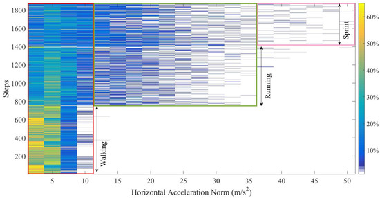 These results indicate that it is applicable to utilize the proposed method to estimate the step length both in walking, running, and sprint motions. Once the parameters are determined in the initialization procedure, for example, walking along a track in different motions, the step length can be estimated in real-time.
