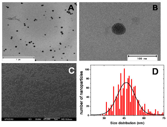 To overcome these limitations, one strategy is to chemically modify commercial fluorescent dyes to increase their specificity as chemosensors for bioimaging. However, the required multistep chemistry increases the cost of production making these modified dyes an unviable alternative. Another alternative is to associate the fluorescent dyes to a carrier that confers the missing properties of fluorochromes alone. Nanoparticles have been increasingly used as nanocarriers of different molecules because their large surface area serves as platform for the attachment of several molecules. Additionally, nanoparticles help to stabilize hydrophobic components in aqueous media and prevent degradation and inactivation of active compounds [15,16,17,18]. In cancer diagnosis and treatment, targeted nanoparticles can be designed and synthesized to enhance their selective uptake and retention inside tumoral cells [4,19,20,21,22,23,24,25,26,27].