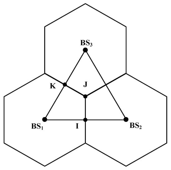 To examine the performance of the proposed location algorithm in the NLOS environment, computer simulations should be implemented. The performance of the proposed location algorithm was compared with other algorithms, such as TSA, LLOP, RSA, and GA. In this paper, the three BSs coordinates were set to BS1: (0, 0), BS2: (1732 m, 0), and BS3: (866 m, 1500 m). For each test, the random real MS location was chosen with a uniform distribution in the range surrounded by the points BS1, I, J, and K as shown in Figure 3. In total, 10,000 tests were performed independently and all numerical quantities are presented in meters.