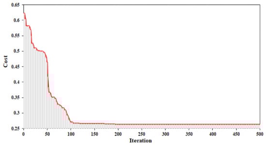 where represents the previous ith position; represents the optimal found position; represents the particle’s best position;and represent random numbers of either 0 or 1; is weights of inertia; is a coefficient; and represents the social coefficient. There are numerous methods for particle weight assignment [64,65]; among them, standard 2011 PSO has been widely used and can be calculated by the following equation: