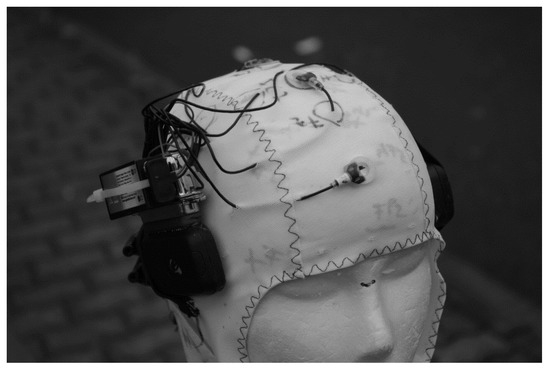 The investigation of brain functions with noninvasive methods such as functional magnetic resonance imaging (fMRI), magnetencephalography (MEG), electroencephalography (EEG), near-infrared spectroscopy (NIRS), and transcranial magnetic stimulation (TMS) is typically limited to laboratory settings. This is because the systems are very large and cannot be moved, and head movements must be avoided (fMRI, MEG), or head and body movements generate large movement artefacts. Within the last decade, there has been a rapidly increasing interest in investigating brain functions in ecological settings (e.g., cognitive or neuropsychological processes in interaction with a natural environment or in a social context; and movement analysis and motor learning), which require portable systems [1,2,3,4,5,6]. Especially in the field of movement research/motor learning, laboratory settings are strongly limiting, because only simple finger or hand or arm movements can be investigated, and it is questioned whether the results of these studies can be transferred to complex movements [7,8,9]. In principle, NIRS and EEG are suited for measures in moving subjects, because the sensors are small and fixed to the head (rather than the head being fixed to the sensor), and the necessary electronics and recording devices can be built small enough. NIRS, similar to fMRI, measures the hemodynamic response related to specific brain processes with a low temporal resolution. Spatially, it is restricted to cortical layers close to the skull. Ref. [10] used a modified NIRS system successfully in a cognitive task when subjects were walking around. Ref. [11] developed a miniaturised wearable functional NIRS system and tested it when subjects performed a left hand gripping task (i) sitting still on a bicycle, (ii) pedaling indoor on a stationary training bicycle, and (iii) during outdoor bicycle riding. The event-related data showed that the task was performed successfully and comparably in all three conditions, whereas data loss was highest in real cycling (about 35%) but much lower in indoor cycling (7.5%) and under rest (5%).