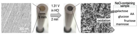 - Zhou, C.H.; Xia, Y.; Huang, W.; Li, Z.L. A rapid anodic fabrication of nanoporous gold in NH4Cl solution for nonenzymatic glucose detection. J. Electrochem. Soc. 2014, 161, H802–H808. [Google Scholar] [CrossRef]
