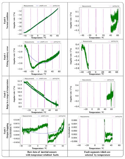 The use of unmanned aerial vehicles (UAVs) is growing due to their advantages in mobility and economics. The reliability achieved by sensors as a measurement and control system has a great impact on the performance of UAVs [,,]. Inertial sensors in UAVs measure the states of motion. Because micro-electromechanical system (MEMS) inertial sensors have obvious advantages in weight, cost, and power consumption, MEMS inertial sensors are widely used in UAVs to perform inertial measuring tasks. However, the performance of MEMS inertial sensors can be significantly affected by external temperature [,,] so diagnosing this type of fault is crucial in guaranteeing the reliable control of UAVs.