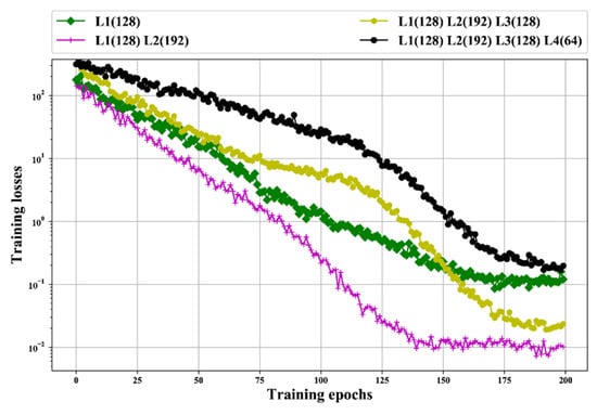 The structure of the proposed BLSTM-based sifting method is shown in Figure 3. The proposed BLSTM-based sifting algorithm is based on a deep BLSTM regression model that consists of several BLSTM layers and one output layer. The neurons in the BLSTM layer can be modified to mine detailed features. The output layer consists of a three-layer fully connected network with 32 neurons in the first layer, 16 neurons in the second layer, and four neurons in the third layer. The output layer is used to reconstruct the features from the BLSTM layers to four dimensions, which is equal to the dimensions of polynomial parameters of the trend signal.